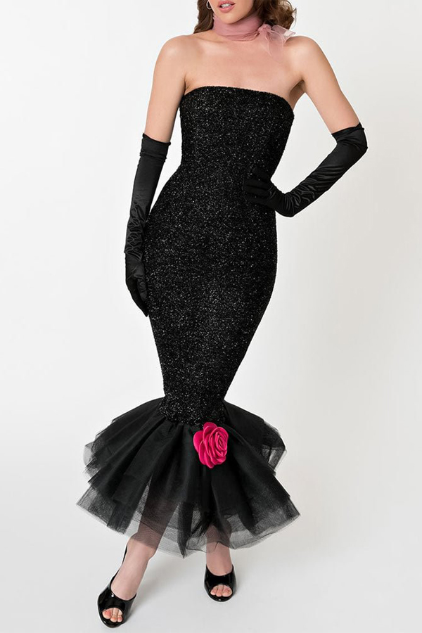 Get your very own reproduction of Barbie’s Solo in this dress. This iconic 1960’s Barbie look was worn by Margot Robbie to the Barbie Premier in Los Angeles. The fabulous skin-tight glitter black formal forms to your feminine fatale curves while the classic layered tulle mermaid flair for versatile wear and boasts a bright.
