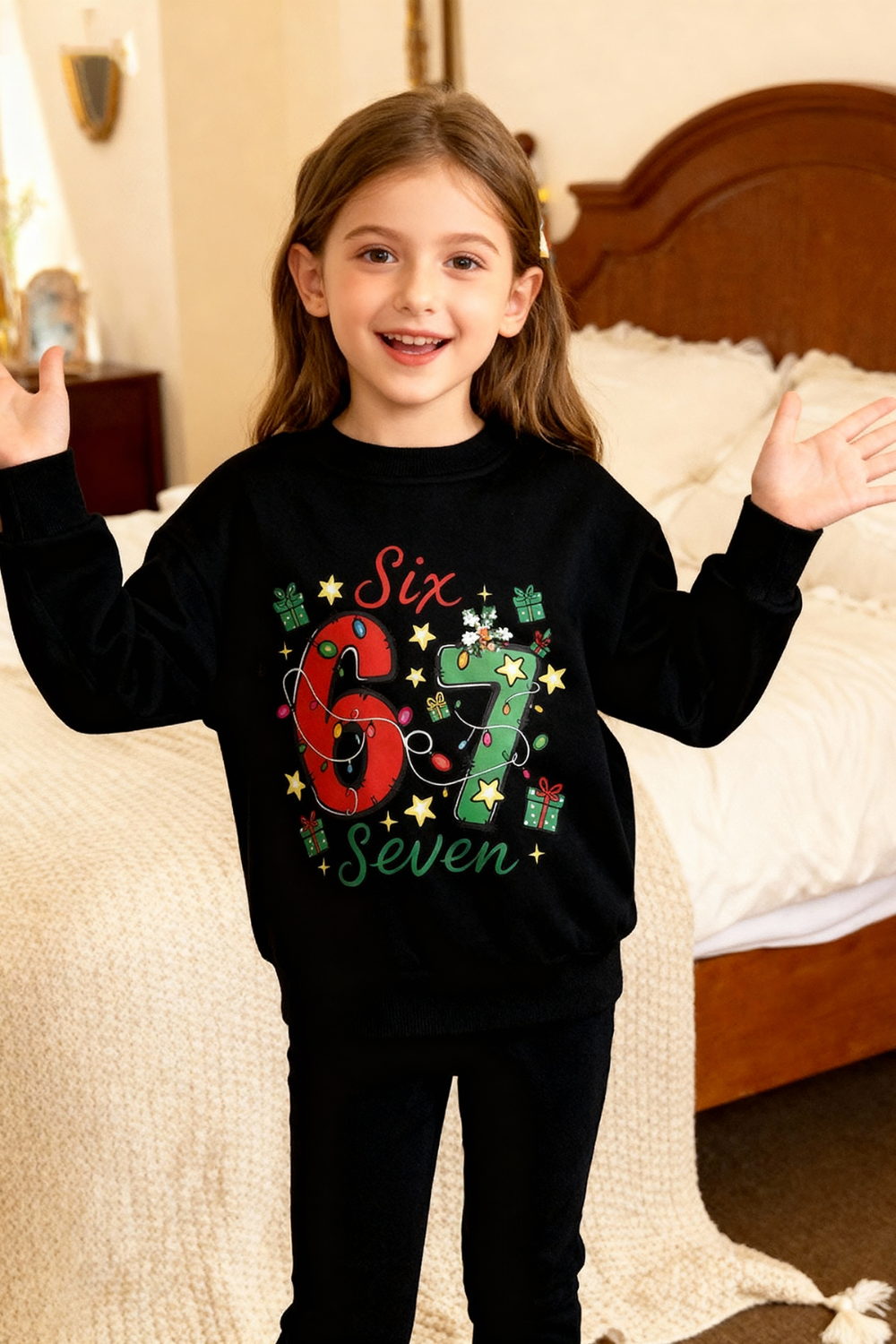 Cozy up for the holidays in our "Six Seven" Christmas Sweatshirt—your ultimate comfort match for festive movie nights and merry mornings by the tree!