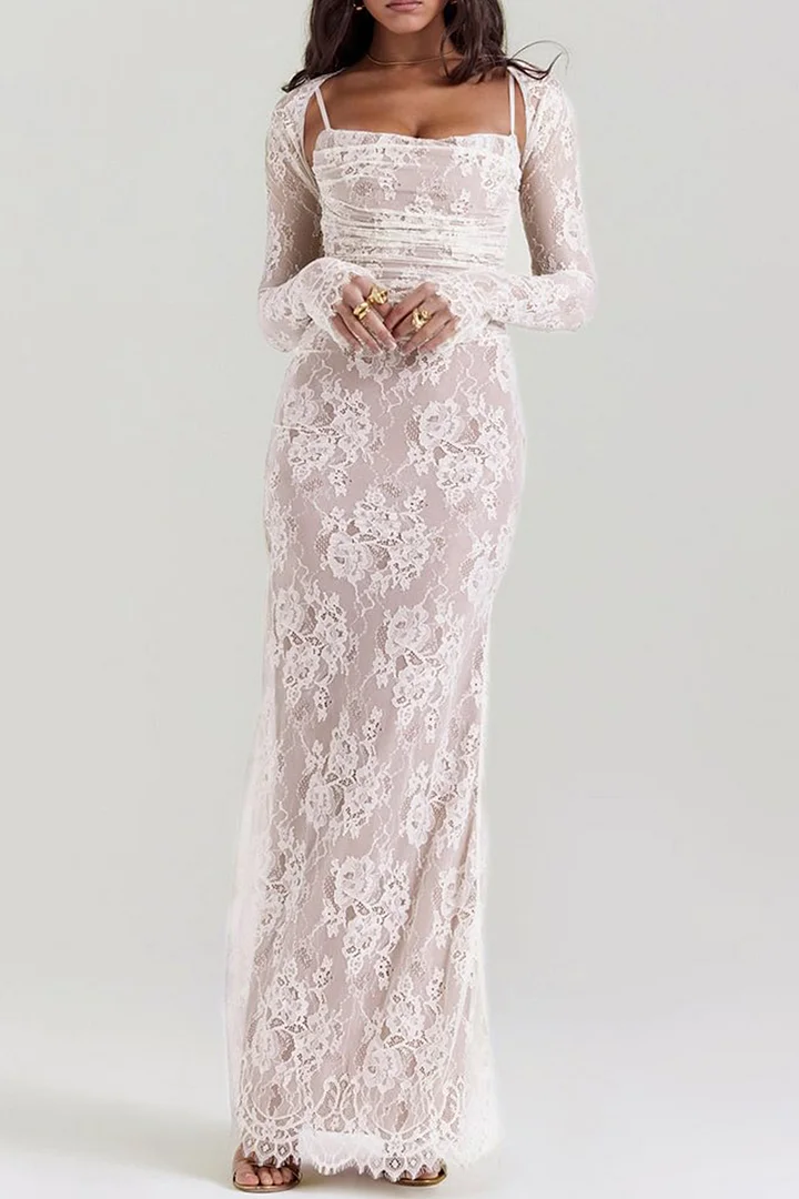 There's a sense of romance about this dress. Beautifully made from exquisite, delicate lace. It features a corseted bodice that's gorgeously gathered with lace up detailing to the back. Skimming over your curves, it sweeps the floor in a flattering maxi length and zips to the side for easy on.